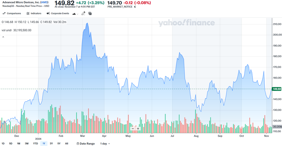 Advanced Micro Devices Inc (NASDAQ:AMD) reported 3Q2024 earnings results on October 29, 2024. The company’s total revenue increased 17% year-over-year to $6.819 billion. The company’s operating profit rose 19% to $3.419 billion. After deducting all expenses, the company earned a net profit of USD 771 million with a respectable 158% year-on-year increase. AMD Chairman and CEO Dr. Lisa Su. said : “We delivered strong third quarter financial results with record revenue, which led to higher sales of our EPYC and Instinct data center products and strong demand for our Ryzen PC processors.” “Looking ahead, we see significant opportunities for data center, client and enterprise growth driven by the insatiable demand for high computing power.”