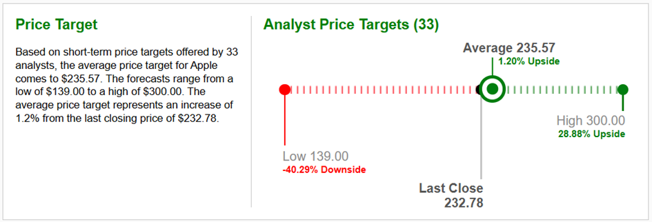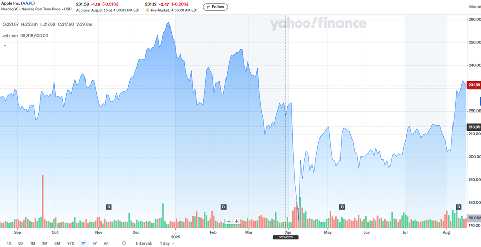 The share price of Apple Inc. (AAPL) stands at USD 231.59 as of August 18, 2025. This represents a slight decline from the previous day. The company’s market capitalization exceeds USD 3 trillion, with a P/E ratio of 30.3 and earnings per share (EPS) of 6.59.