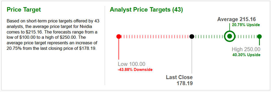 NVIDIA Corporation (NASDAQ:NVDA) also pays regular quarterly dividends. The current dividend yield is 0.02% p.a. The dividend amount itself was approved by the company’s general meeting at USD 0.01 per share. The average target price for the short to medium-term investment horizon was set by 43 analysts from Zacks.com at USD 215.16 per share.