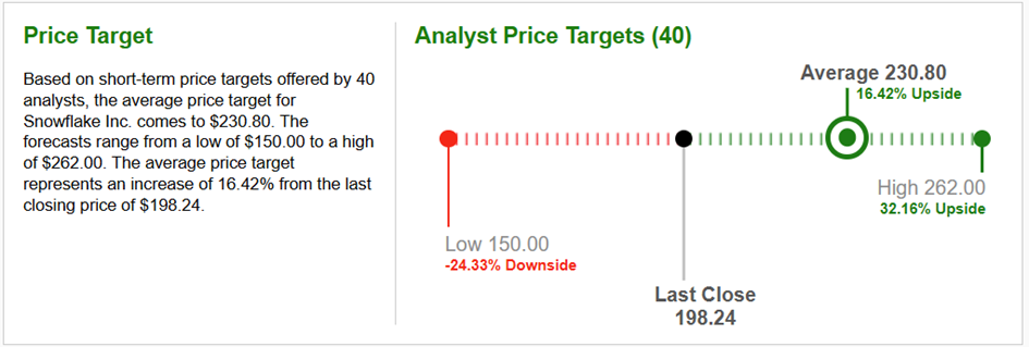 These facts attracted multinational investment corporations and private investors to purchase shares in Snowflake Inc. (NYSE: SNOW), for which the average target price for the short to medium-term investment horizon was set at USD 230.80 per share.