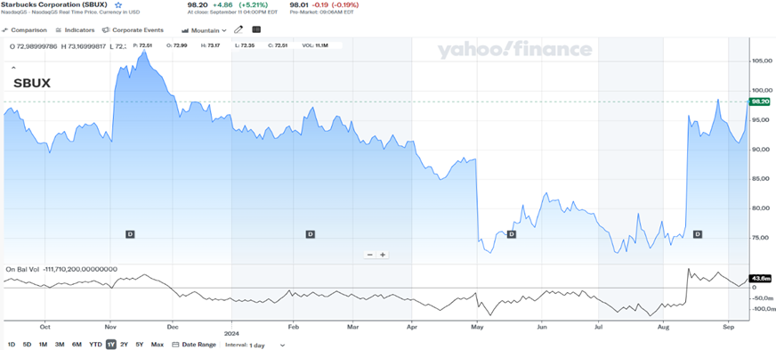 Former CEO Laxman Narasimhan , who was appointed to head Starbucks Corporation in April 2023, was ousted due to strong dissatisfaction from the board of directors and across Starbucks management in August 2024 and replaced by Brian Niccol , who became the chain’s CEO on September 9, 2024. According to sources available to Wikipedia, Niccol received an annual starting salary of $1.6 million and a $10 million signing bonus. Brian Niccole was previously the CEO of Chipotle, which upon his appointment to lead the company on March 5, 2018, saw Chipotle Mexican Grill Inc. shares rise in value. CMG : NYSE surging a whopping 773%.  Starbucks Corporation (NASDAQ- SBUX) also recently released its third quarter 2024 financial results. The company generated total sales of $9.114 billion with a slight year-over-year decline of 0.6%.  Operating profit was $1.518 billion. After deducting all expenses, the company earned USD 1.055 billion.