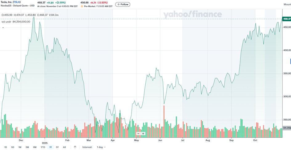 As of November 4, 2025, Tesla Inc. shares are trading at approximately $468.37, representing a slight increase of 0.026% from the previous day. Despite short-term stabilization, however, the stock has experienced increased volatility in recent months. Financial results for the second quarter of 2025 showed a decline in both profits and revenues, despite record deliveries of approximately 497,000 vehicles in the third quarter, partly supported by US tax breaks.